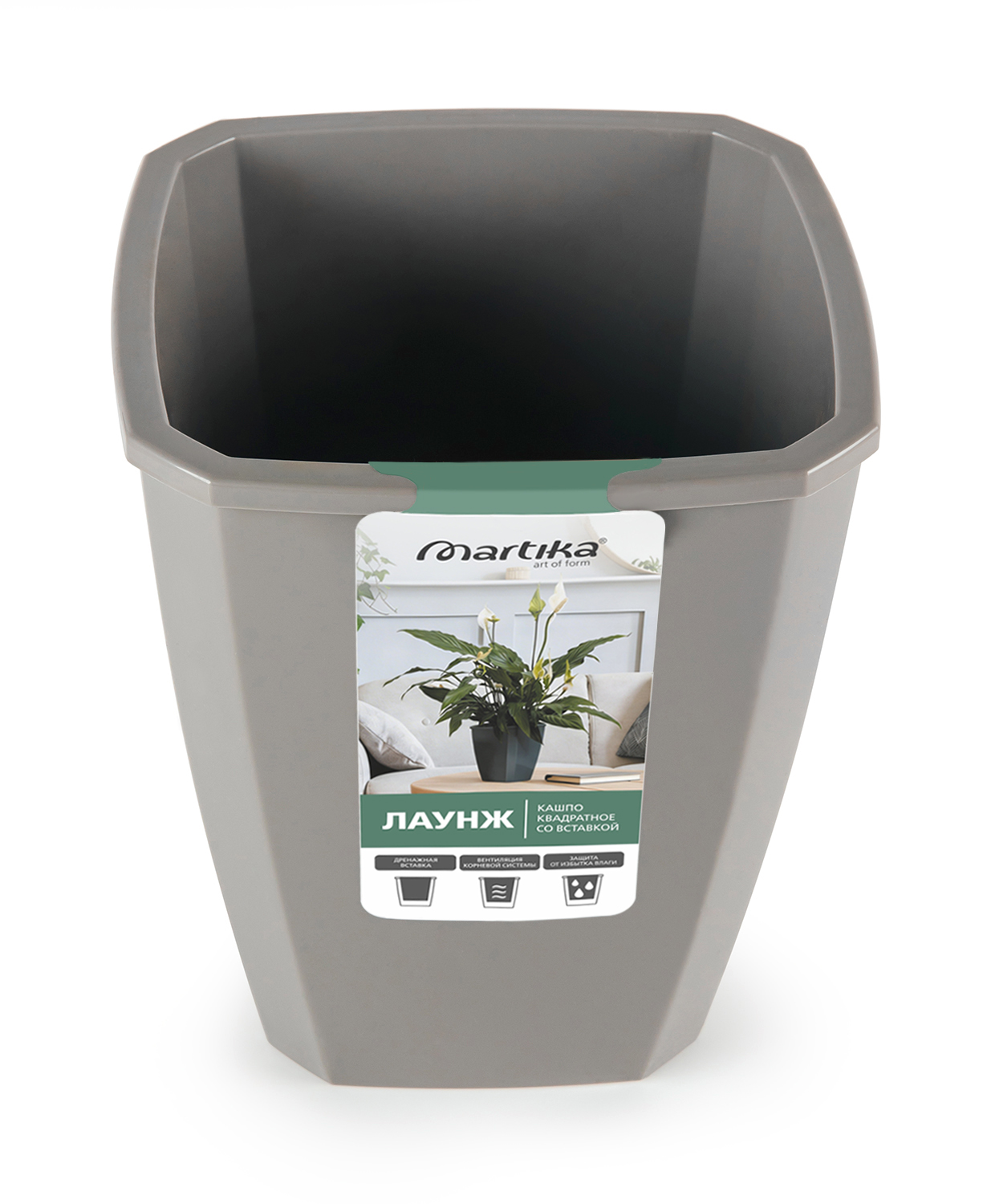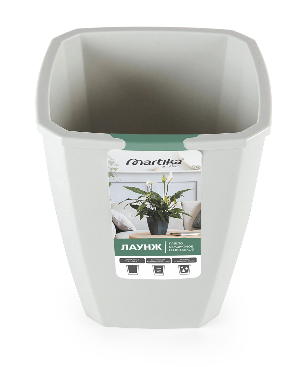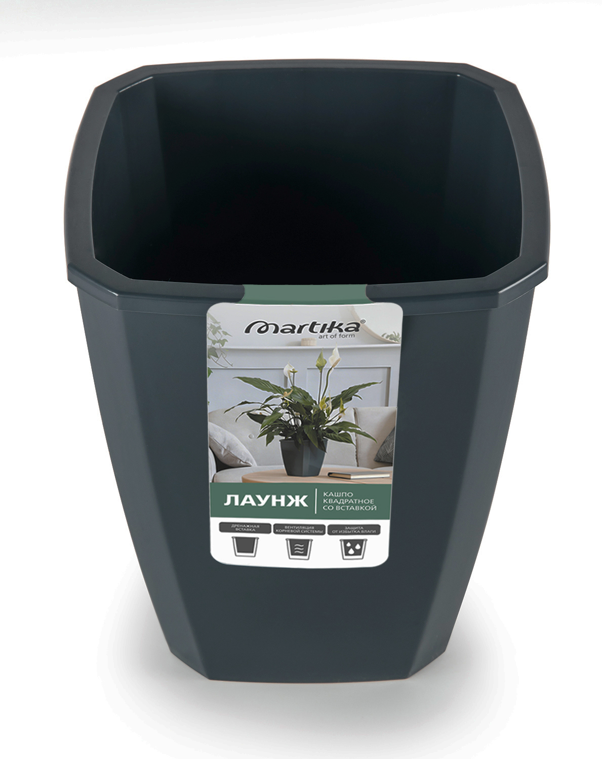 Кашпо квадратное «Лаунж» - это современное и функциональное решение для озеленения интерьера. Кашпо представлено в двух объемах 2,4 литра (вставка 1,6 л) и 4 литра (вставка 2,8 л). Дренажная вставка помогает регулировать уровень влажности в почве, обеспечивая равномерное распределение влаги по всему горшку и вентиляцию корневой системы. Такое кашпо уместно везде - в небольших квартирах, в больших домах и для озеленения офисов.