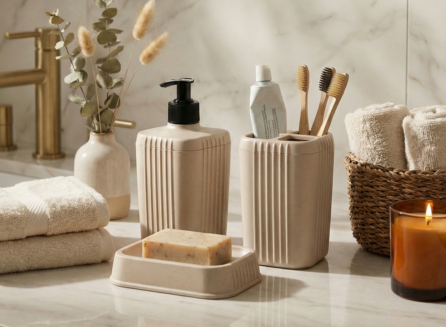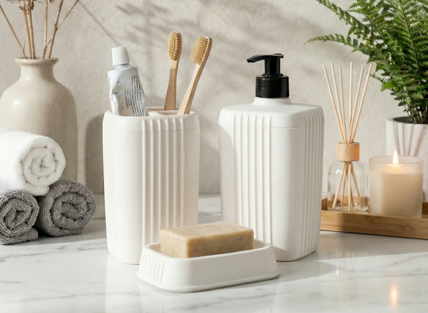 Дополните Дозатор для жидкого мыла другими аксессуарами для ванной комнаты коллекции «Лайн».