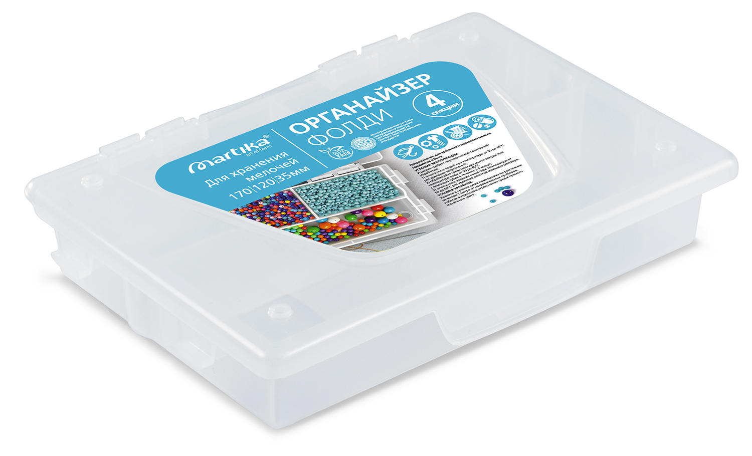 Органайзер «Фолди» предназначен для компактного хранения и переноски различных мелких предметов: швейных и рыболовных принадлежностей, медикаментов, крепежных изделий и мелких инструментов, карандашей и фломастеров. С помощью съемных перегородок можно легко менять размер отделений. Отделения органайзера позволят систематизировать мелкие предметы, а прочный замок-защелка обеспечит плотное закрывание крышки.