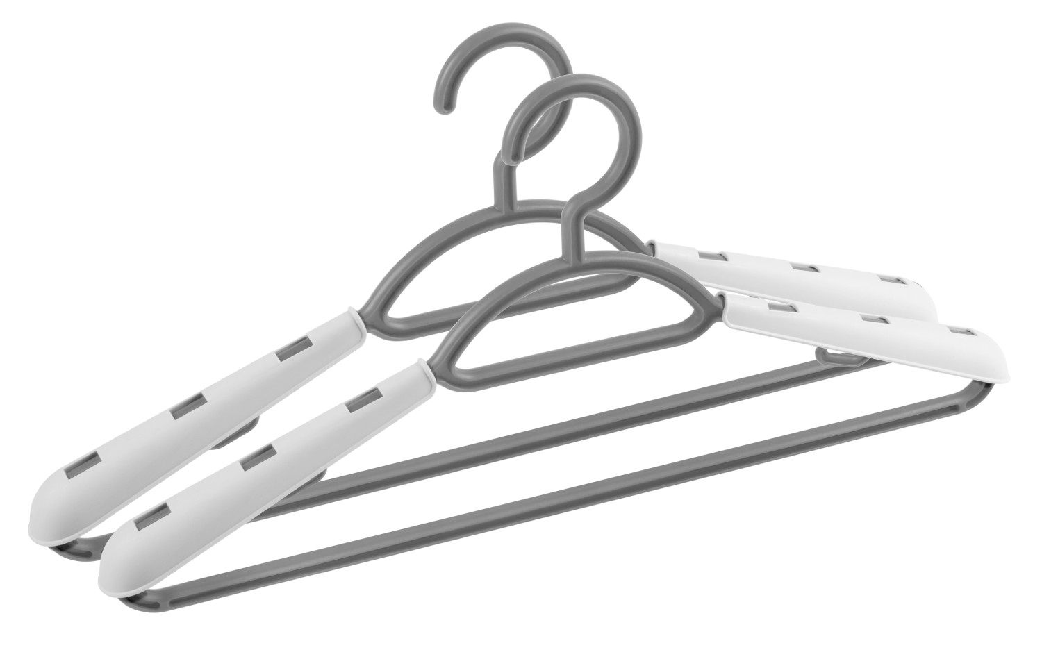 Комплект состоит из 2-х вешалок, предназначенных для всех типов одежды. Вешалки оснащены специальными накладками для хранения пальто, жакетов. Имеют нижнюю перекладину для брюк и боковые крючки для одежды с петлями или лямками, выдерживают нагрузку до 4-х кг.