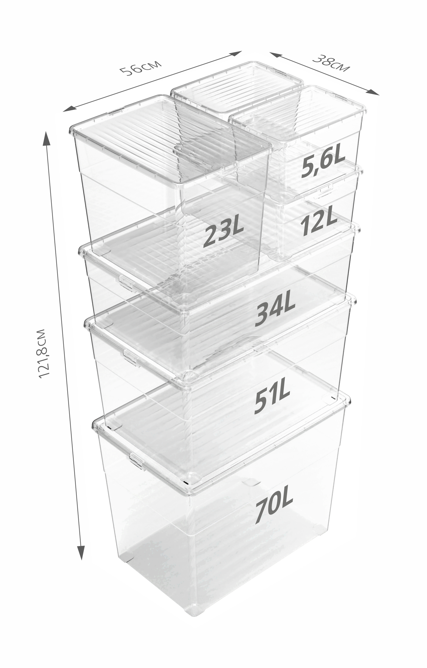 - Широкая размерная линейка: серия ящиков представлена в шести объемах – 5,6л, 12л, 23л, 34л, 51л и 70л.