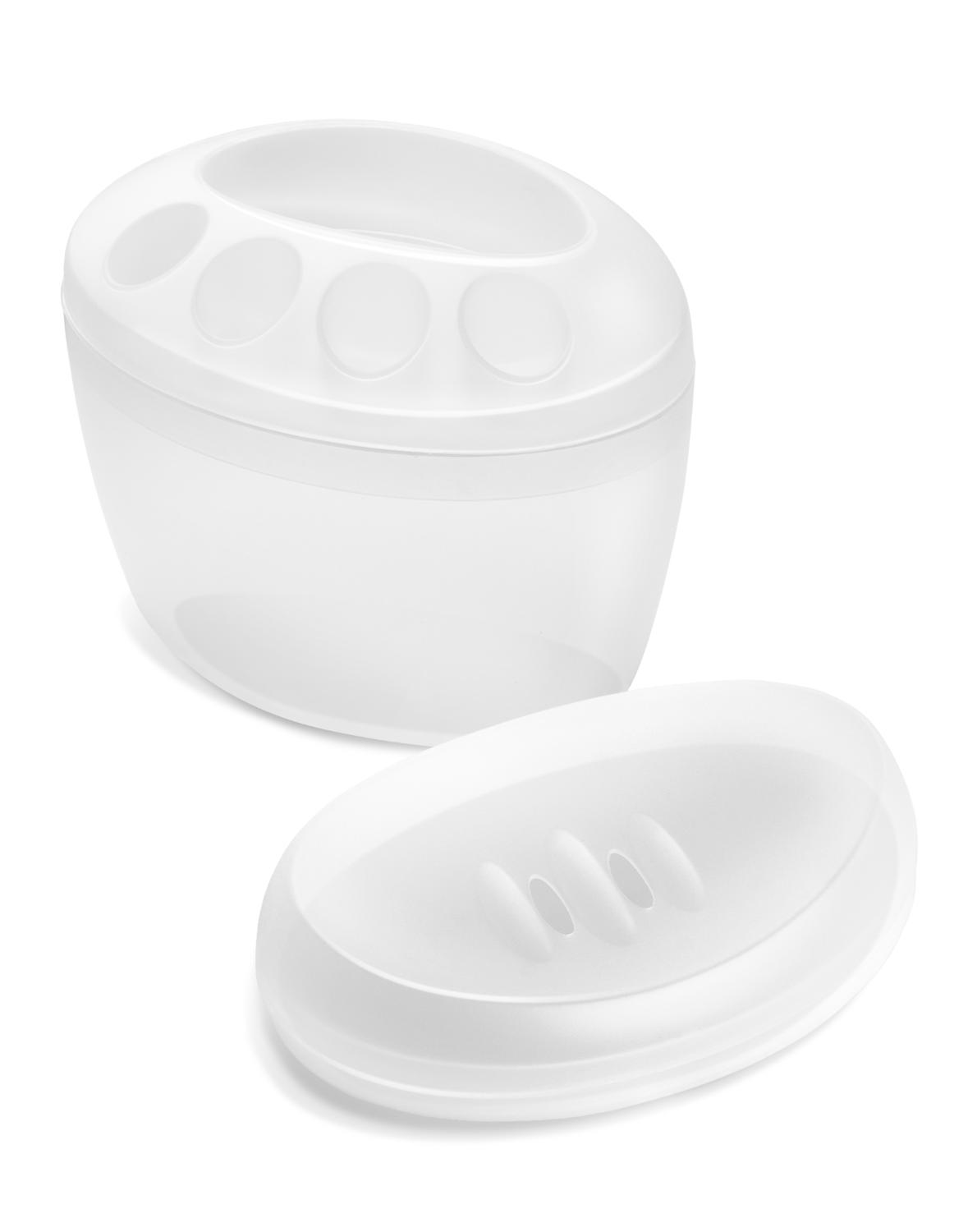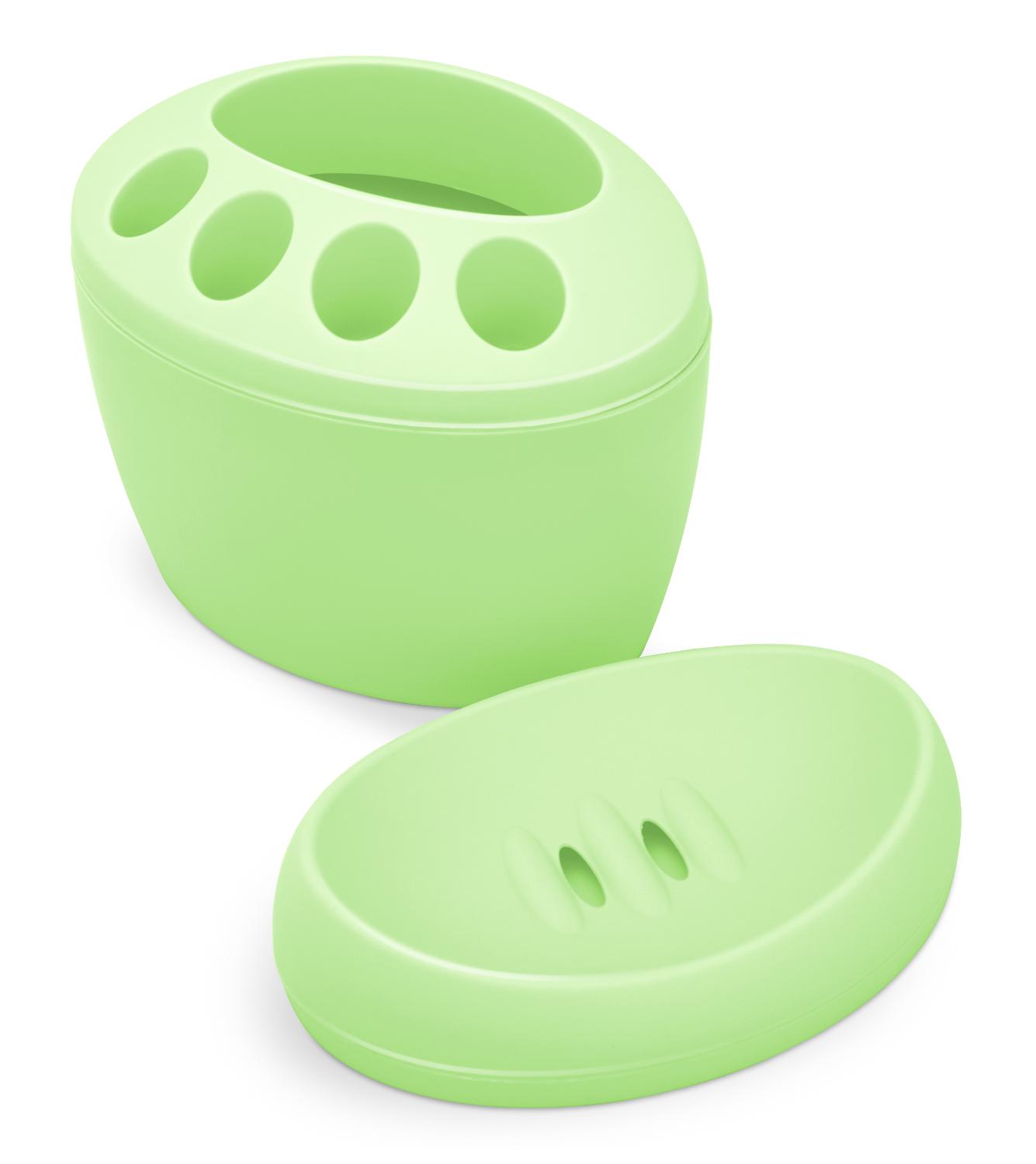 Набор «Камея» состоит из мыльницы и подставки для зубной пасты и щеток. Выполненный в одном стиле набор дополнит интерьер любой ванной комнаты. Конструкция мыльницы состоит из поддона и верхнего съемного элемента с отверстиями для отвода воды, что препятствует размоканию мыла. В подставке предусмотрены отдельные ячейки для хранения зубных щеток и тюбиков зубной пасты. Конструкция разборная, проста в уходе, легко моется.